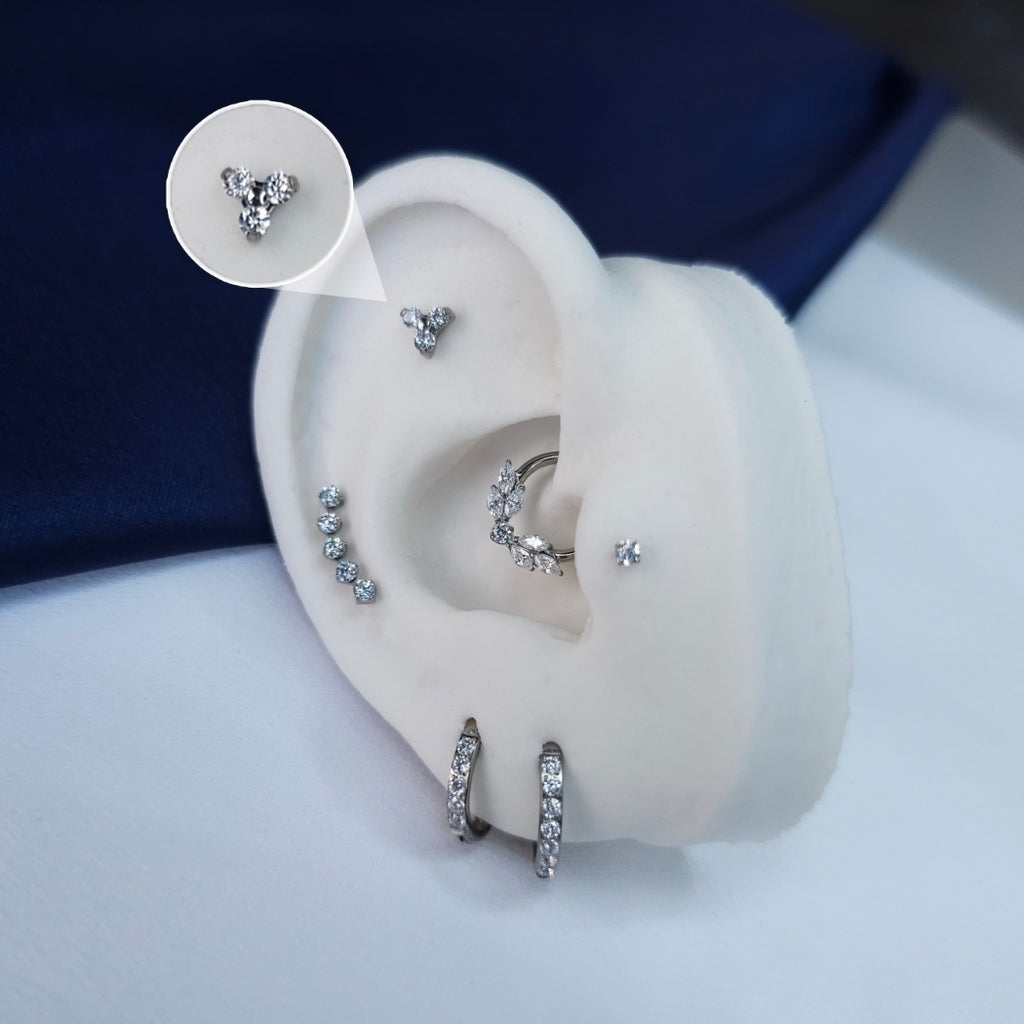 Encante-se com este delicado piercing de titânio em forma de flores, onde a beleza da natureza se une à elegância contemporânea. Cada detalhe floral é meticulosamente projetado para refletir charme e sofisticação, tornando esta peça a escolha perfeita para quem deseja exibir seu estilo único. Leve e hipoalergênico, este piercing é ideal para o uso diário e para adicionar um toque de frescor e feminilidade ao seu visual.